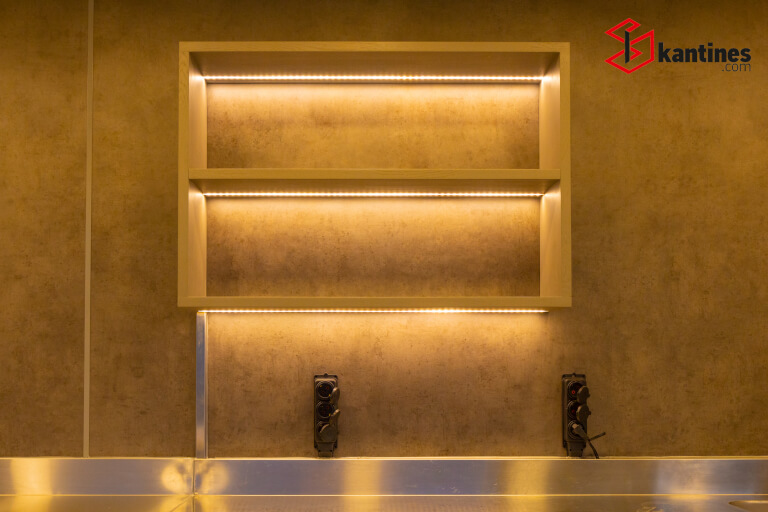 - Rozsdamentes acél pult alatti hűtőszekrény.