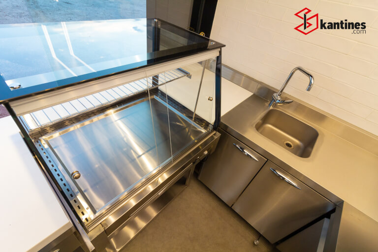 • Rozsdamentes acél pult alatti hűtőszekrény.